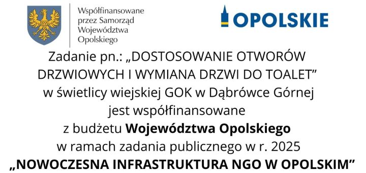 Z ogromną radością informujemy, że zakończyliśmy realizację zadania pn. „WYMIANA DRZWI WEWNĘTRZNYCH” w holu naszej świetlicy wiejskiej GOK w Dąbrówce Górnej.