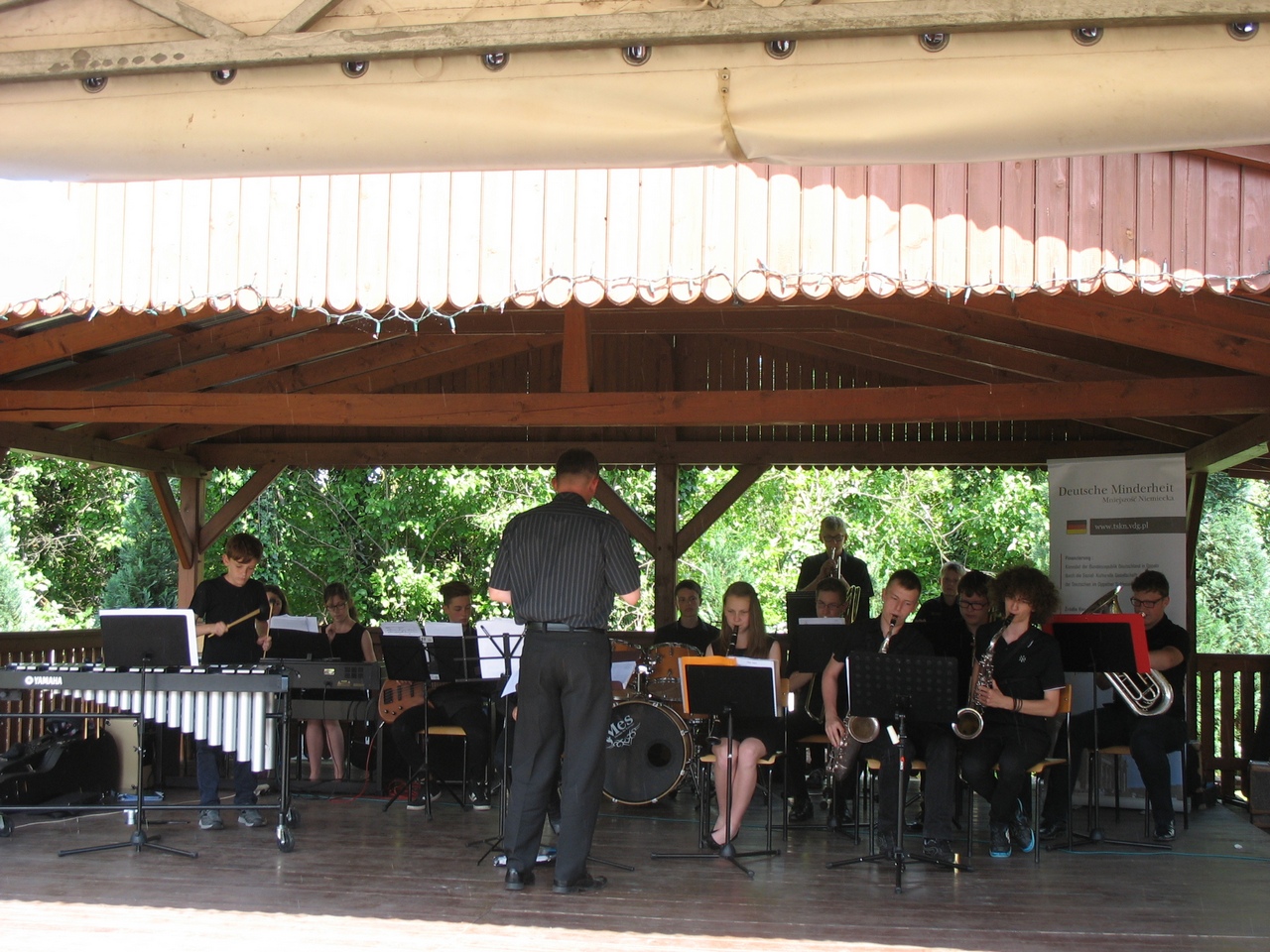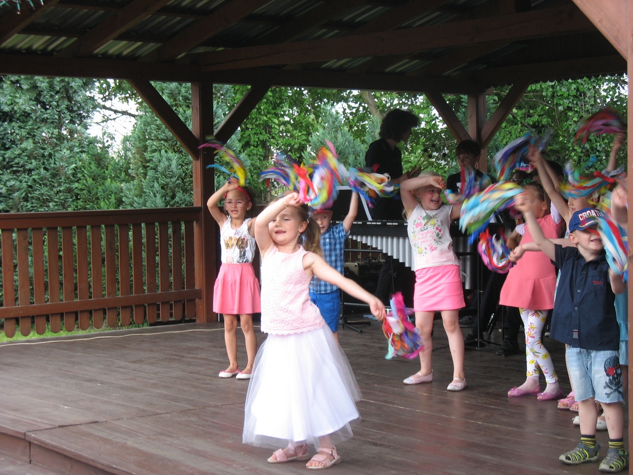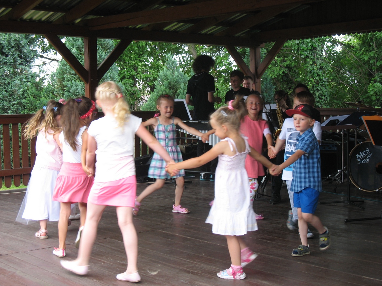 Festyn rozpoczął się występami naszych dzieci przedszkolnych, szkolnych, a następnie mogliśmy zobaczyć występy zaproszonych gości: Big Band Krapkowice i zespołu tanecznego WAL-NAK z Raszowej.